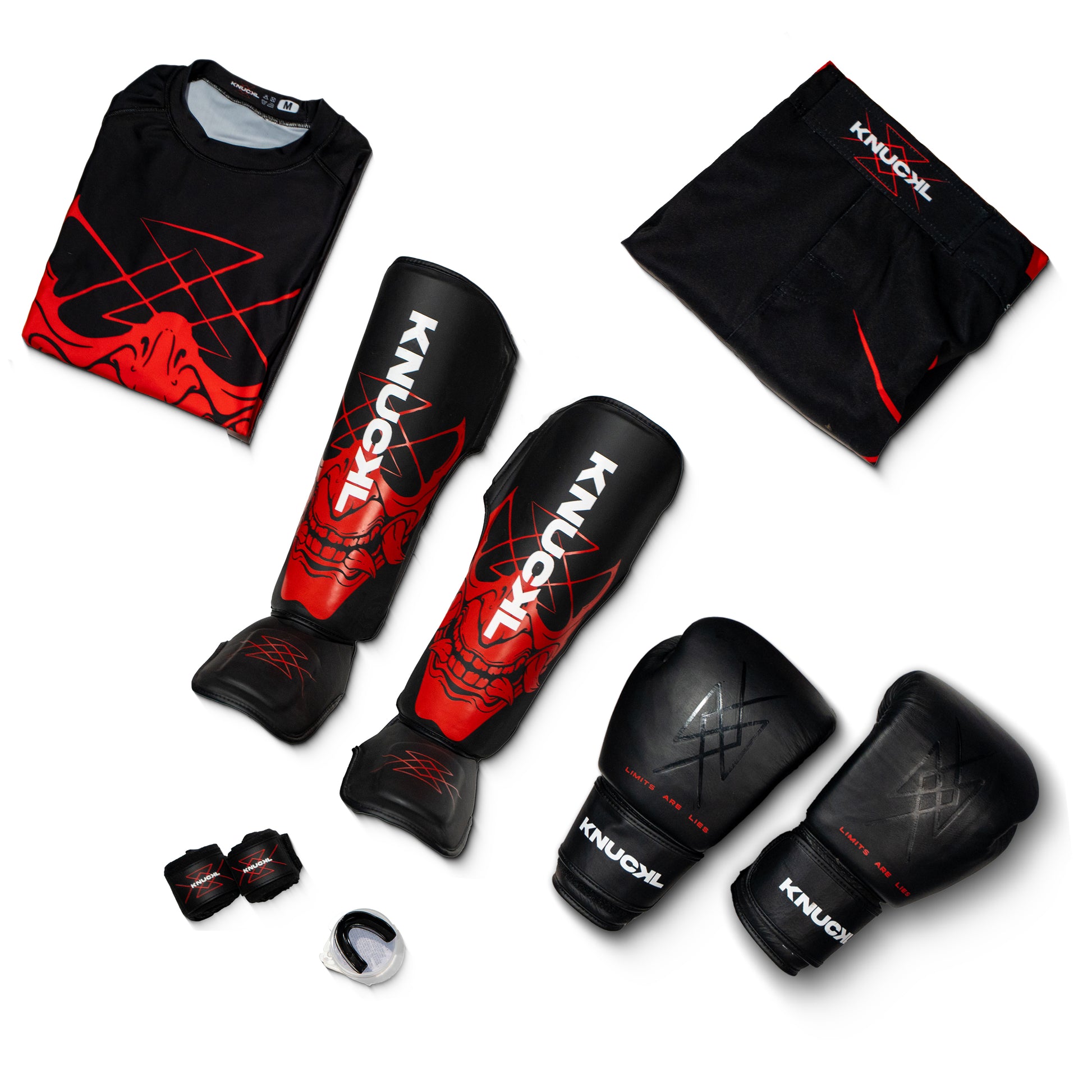 The Knuckl Full Warrior Kit is the ultimate package — everything you need for striking, sparring, and conditioning in one set. Built for serious fighters who want to train fully equipped, this kit protects every strike zone: hands, wrists, shins, body, and even your smile.
